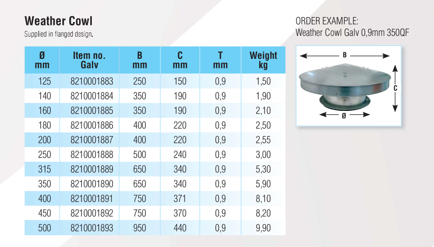 Quick-Fit Weather Cowl – Galvanised – Nordfab
