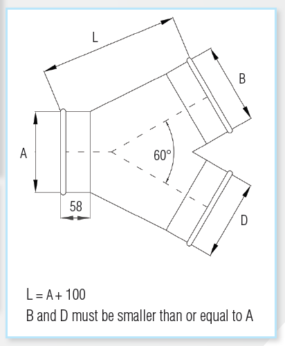Quick-Fit Y-Branch (Breeches) – 60 Degree – Galvanised – Nordfab
